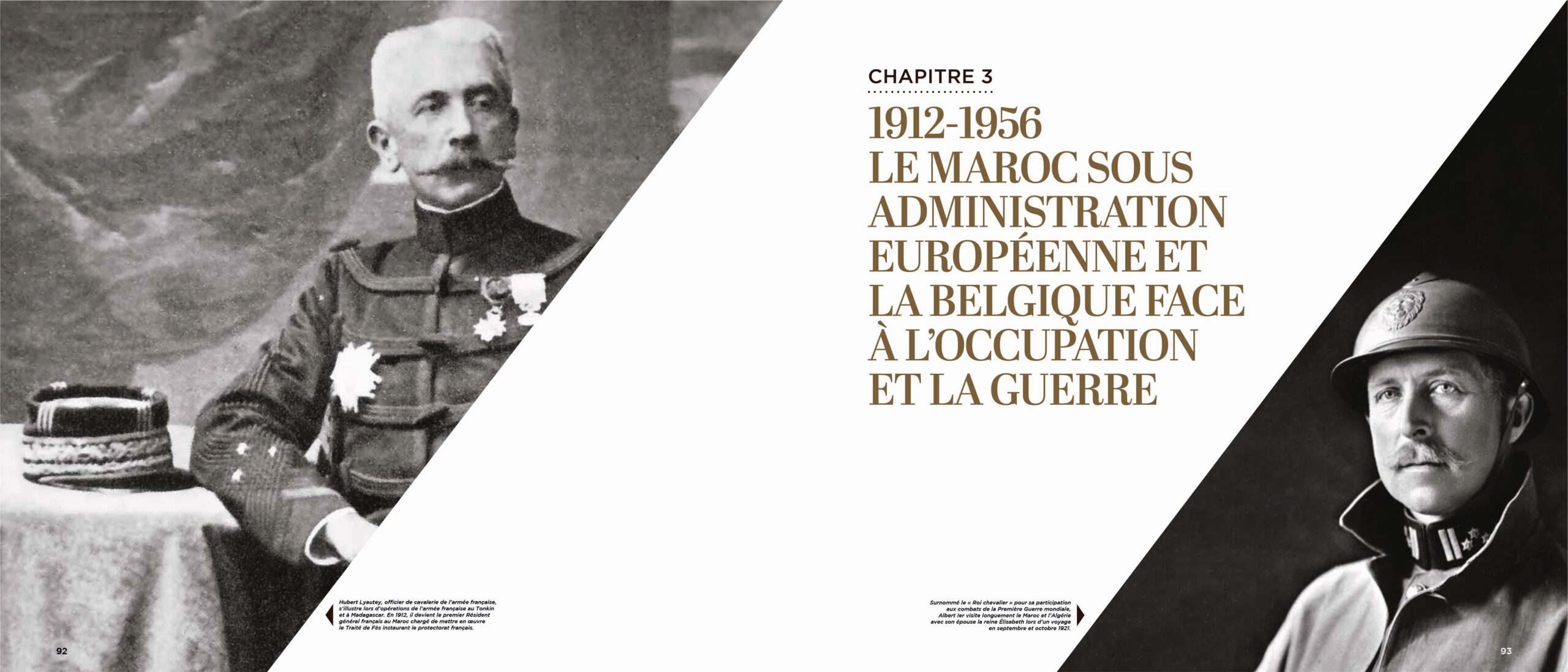 Le Maroc aborde le XXe siècle privé de son indépendance millénaire et de la souveraineté sur son territoire forgées par les dynasties régnantes qui se sont succédées depuis l’avènement d’Idriss Ier en 789. La France du Maréchal Lyautey et l’Espagne instaurent leur administration, prenant en charge la « protection » du pays. Pendant ce temps, la Belgique traverse le tumulte de deux guerres mondiales et en subit les conséquences dramatiques. Nombreux sont les soldats marocains qui sacrifient leur jeunesse en combattant les forces allemandes sur le sol belge et européen. Paradoxalement, la présence belge au Maroc s’intensifie comme jamais auparavant : commerçants, industriels, artistes s’installent en nombre croissant sur les territoires marocains sous protection française telles que Rabat, Casablanca, Tanger, Marrakech ou Agadir. Dès l’entre-deux-guerres, des mouvements migratoires en sens opposé émergent et s’amplifient après 1945, marquant durablement les relations entre les deux pays.